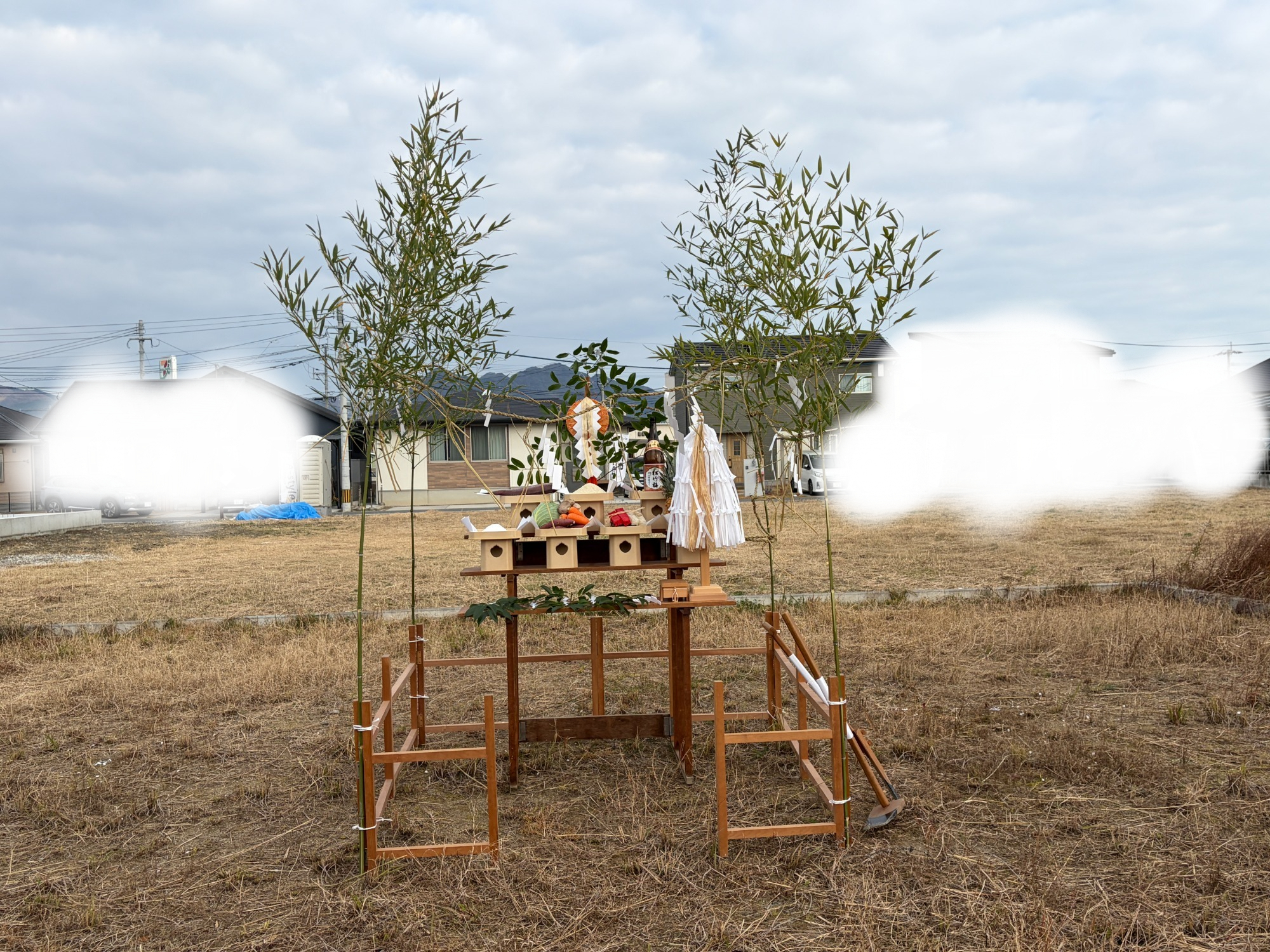 暖かくお天気に恵まれ、春の近づきを感じ始めた3月 H様邸の地鎮祭をとり行いました。地鎮祭とは、その土地の神様を鎮め、土地を利用させてもらうことの許しを得る儀式です。